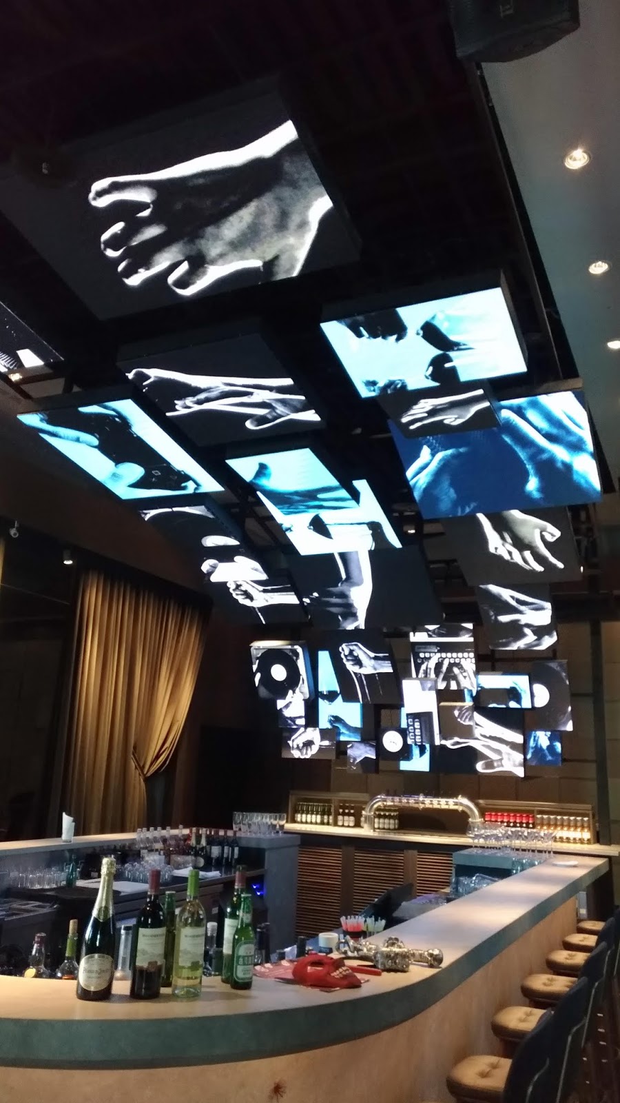 當時標誌性的"手"LED影像已更換成"星星堆滿天"的影像,感覺就像在科幻片中的星際酒吧喝酒,一種迷離夢幻之感,很是特別。(幸好沒有一整天都是「手來手去」XD )