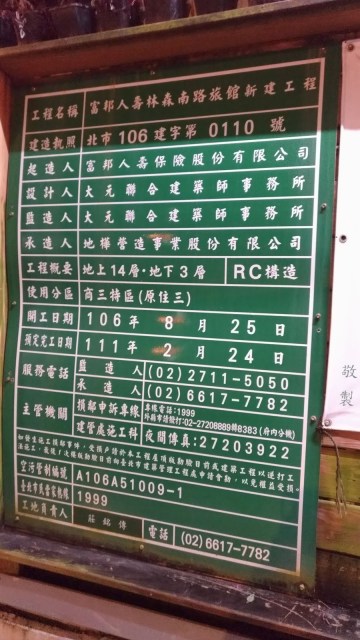 | 工程告示牌(筆者攝於2019/01/23晚上) |