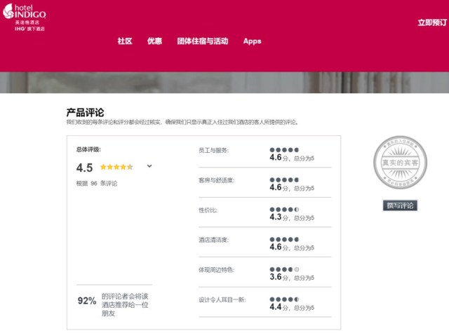 英迪格酒店官網的會員評比網頁(截圖來源:酒店官網 )