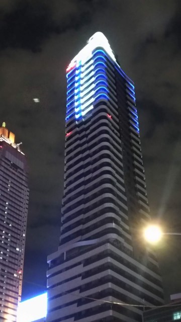 | 去年起,晚上的基泰忠孝大樓經常進行外牆試燈,長度有時是三分之二,有時僅三分之一 |