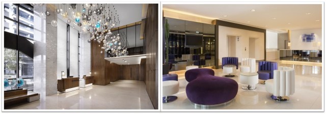 | 台中萬楓酒店大廳(左) / 台中公園智選假日酒店大廳 (右) |