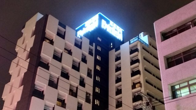 | 酒店的招牌在晚上點亮,對於從逢甲夜市走路回去的筆者來說,倒是像燈塔一樣 |