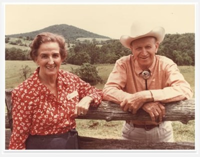| John Willard Marriott(右)與Alice Marriott(左)夫妻於 Fairfield農莊合影(圖片來源: 萬楓酒店官網 ) |