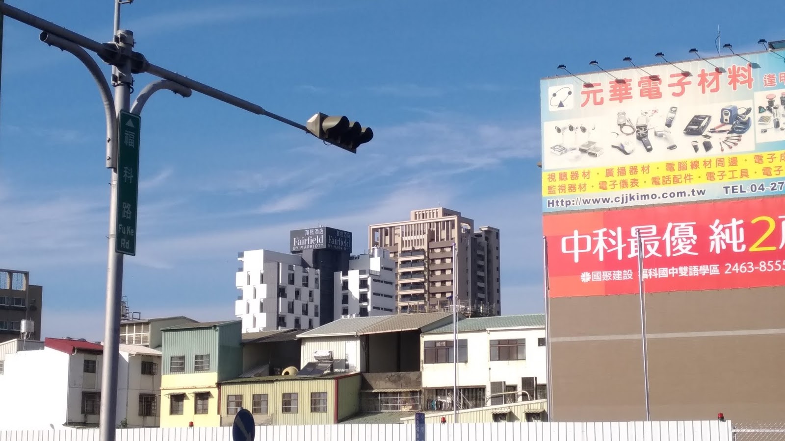 | 在黎明與福科路口的星巴克外就可以看到台中萬楓酒店 |