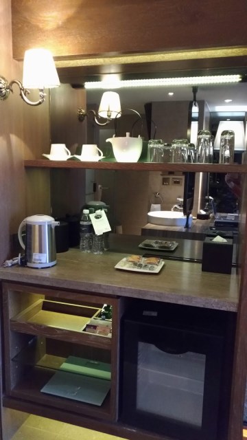 | 2017年時的迷你吧,現今只有枱面上的一盤招待的點心 (圖片來源: 網友部落格 ) |