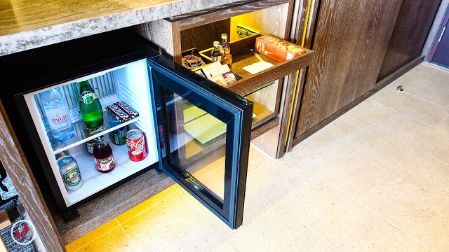| 2017年時的迷你吧,現今只有枱面上的一盤招待的點心 (圖片來源: 網友部落格 ) |