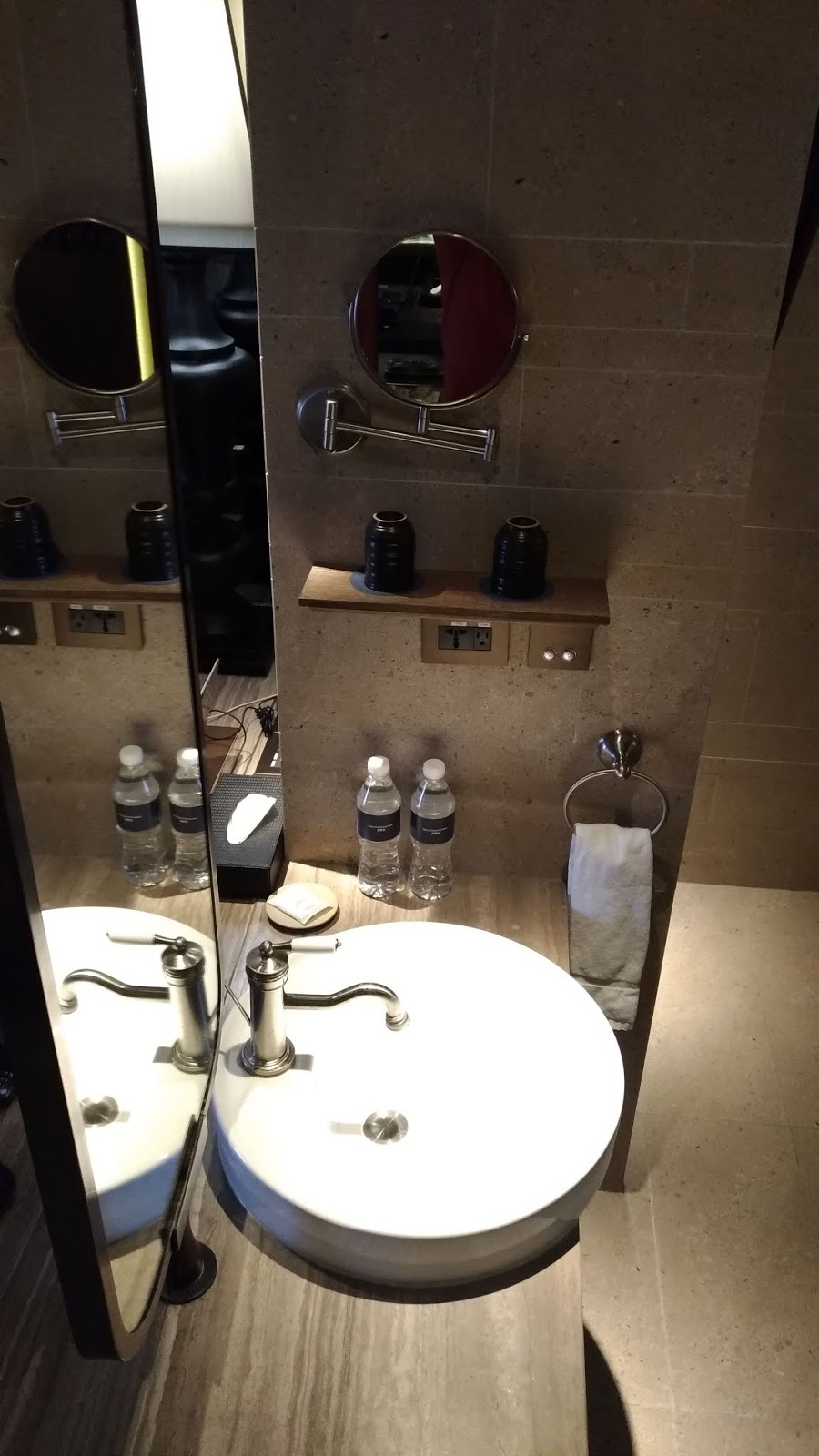 第一天入住進房時,衛浴區就有些問題:洗臉台水龍頭滿布水漬,外加手持式蓮蓬頭的活動支架故障(只會往下掉,不能往上固定住),第一次去電給服務人員反映蓮蓬頭架的問題,等候15分鐘未果,只好繼續晚餐的行程。隔天上午再次告知去電服務人員,並表示上午外出後下午才會返回房間,服務人員告知需等回房後再請工作人員前去檢修。