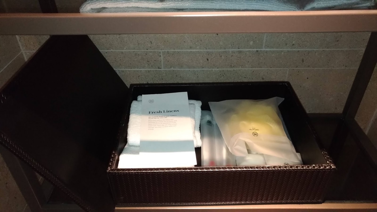 | 備品盒(有擦臉小方巾、牙刷組、浴帽等備品) |