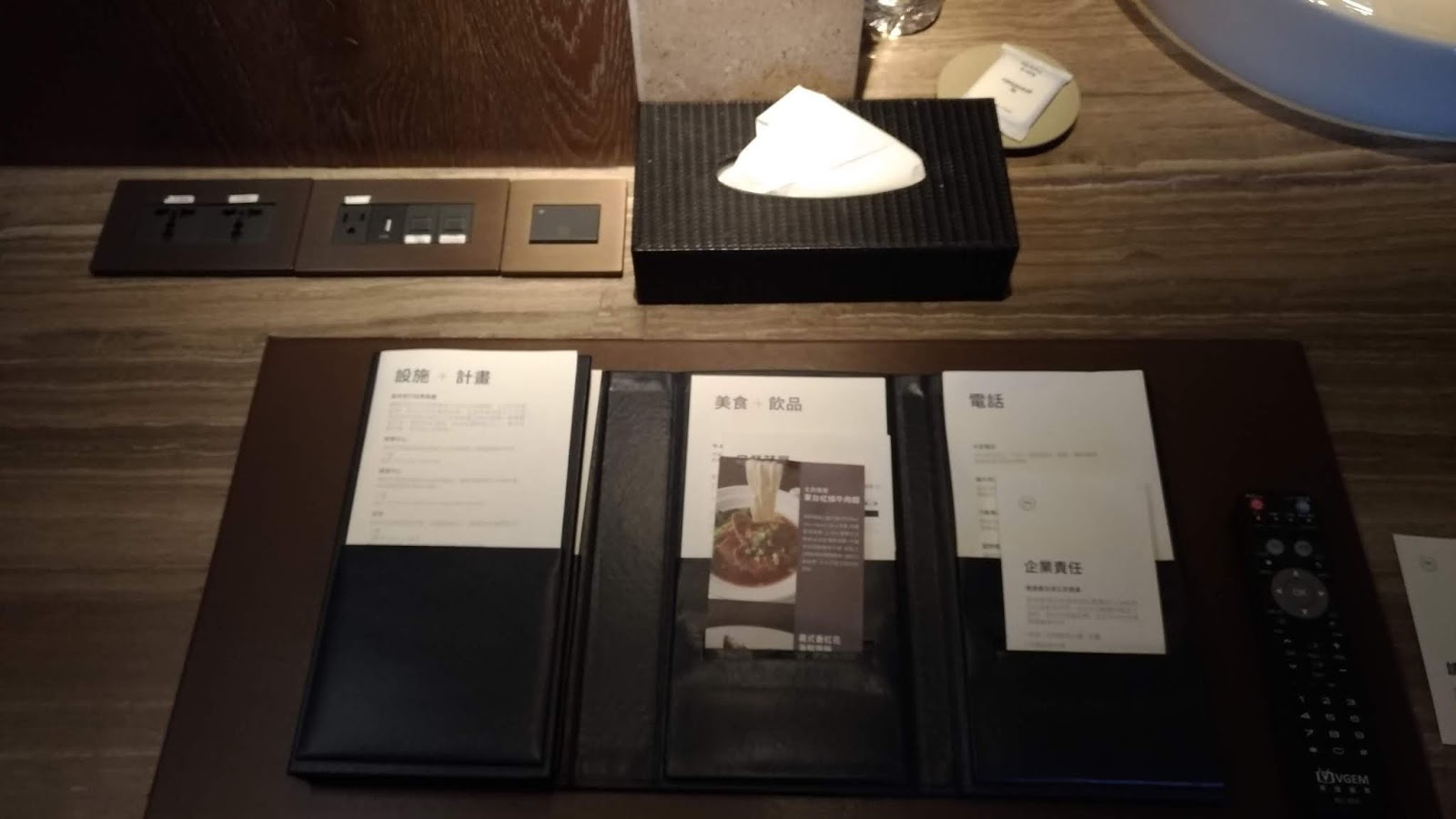 | 酒店指南夾中有酒店設施說明,以及客房服務菜單、電視頻道表、電話使用收費表等 |