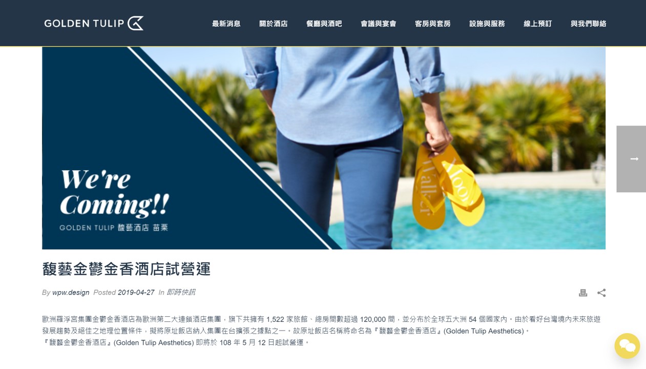 | 苗栗馥藝金鬱金香酒店官網消息 (圖片來源: 官網截圖 ) |