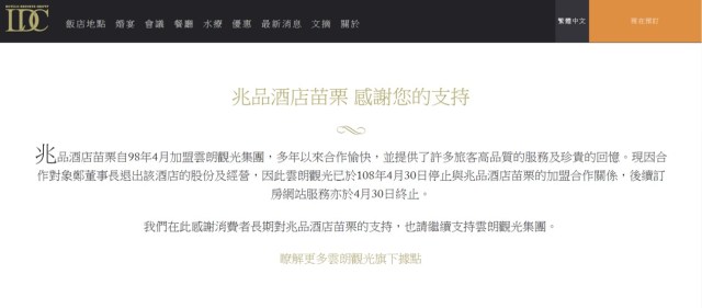 | 雲朗觀光集團官網公告 (截圖來源:集團官網 ) |