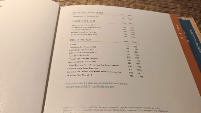 筆者詢問服務人員是否有比較不澀的紅酒,她建議了下方酒單頁的Ruffino Chianti Classico,也確實比較不澀而順口。