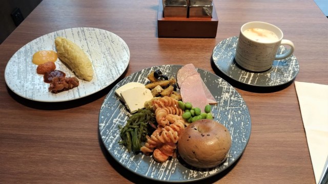 台中萬楓酒店所提供的早餐,以整體配置與服務已算是精緻,印象所及,類似台北北投雅樂軒「聚聚樂餐廳(Nook)」的服務規格(但設計風格當然是完全不同),若與平價型、房價含早餐的智選假日酒店相比,則中階定位的萬楓酒店較佳(當然,價格也有高低不同)。