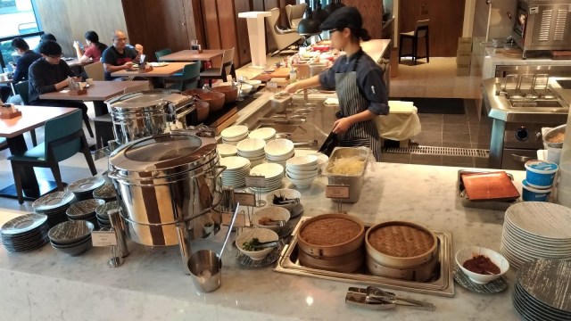 台中萬楓酒店的萬楓餐廳採全日制方式營業,提供自助式早餐(另有單點品項可參考現場菜單),以及午餐至晚餐時段的單點餐飲服務。本篇介紹早餐與晚餐時段的用餐狀況。