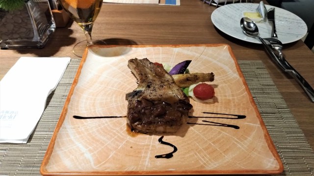 筆者的主菜選擇了上圖的豬排,一旁附上燒烤過的蔬菜,而蘋果焦糖醬的酸甜平衡了肉類的口感,基本上是吃食材原味的主餐,筆者印象中雖有再灑了胡椒與鹽,但味道還不錯。