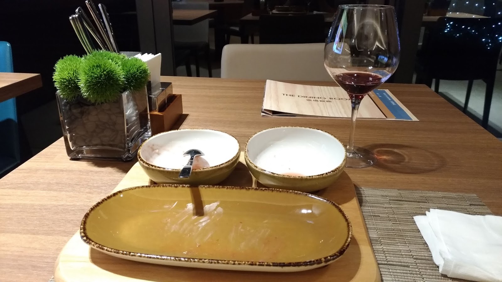 用餐過程中,印象深刻的插曲是鄰桌剛好有三位外國商務客在用餐飲酒聊天,其中一位突然「呷好道相報(台語)」地說:「欸!這個義大利肉醬麵不錯!你們試一下!」其他二位嚐了之後,也紛紛認同,然後又繼續喝酒閒聊。本篇以今年1月初的住宿用餐狀況為內容,當時菜單中有一部份品項未開放(可能是因為剛開幕不到一個月,尚在測試的關係),包含部份義大利麵、披蕯等,而義大利肉醬麵是當時可享用的項目。