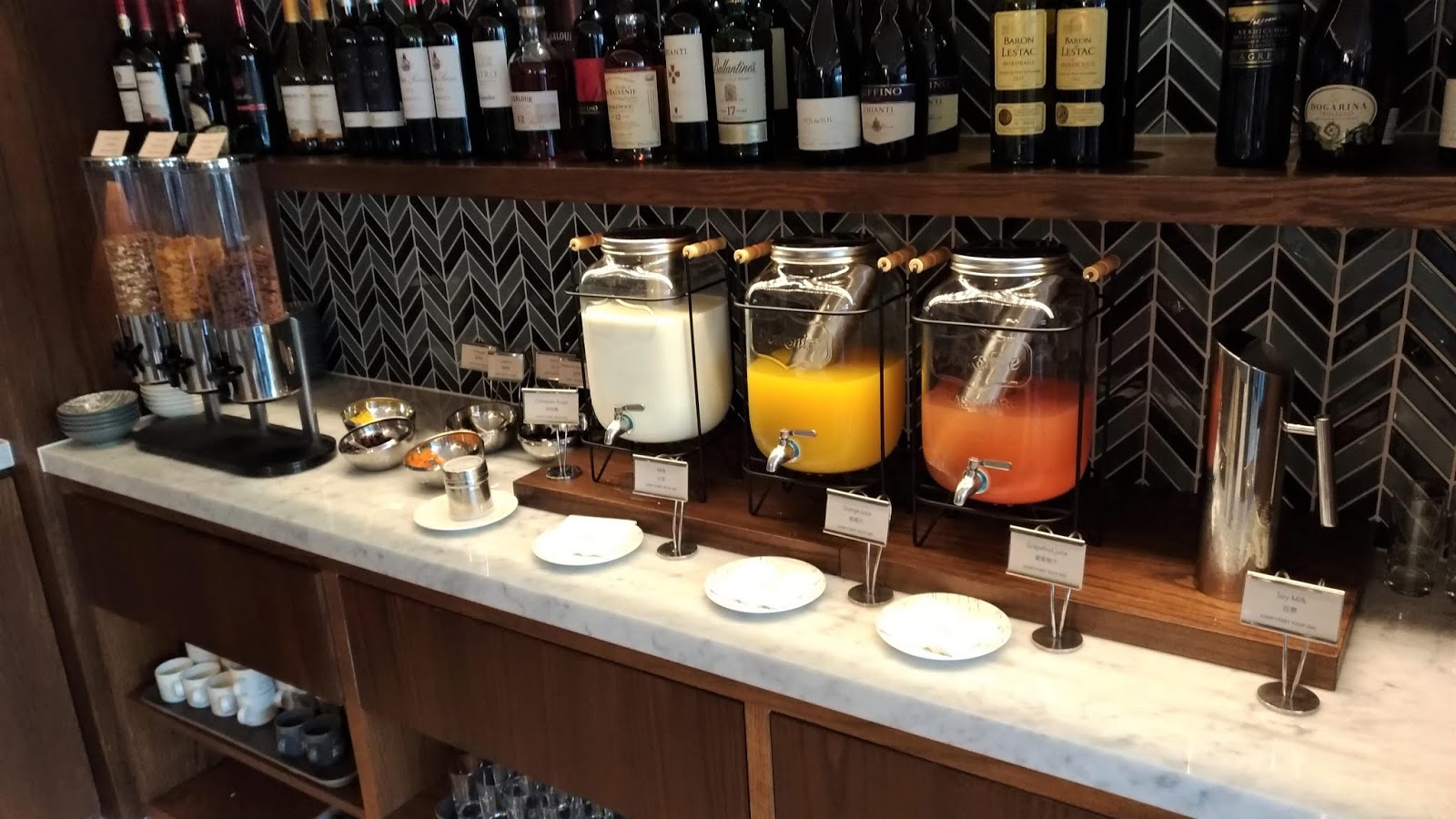 台中萬楓酒店所提供的早餐,以整體配置與服務已算是精緻,印象所及,類似台北北投雅樂軒「聚聚樂餐廳(Nook)」的服務規格(但設計風格當然是完全不同),若與平價型、房價含早餐的智選假日酒店相比,則中階定位的萬楓酒店較佳(當然,價格也有高低不同)。