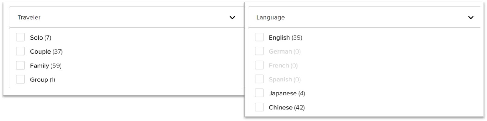 至於上圖的中間區塊則是分數與評論者的分佈狀況,在127則評分中,4分以上者有108則,未達4分者有19則,意即滿意程度達85%;而在會員等級中,金卡會員以下者有37位,金卡會員以上者有54位(另有35人為「非會員」或「未表明會籍」者,似有1位漏填),意即77%的會員評價在4分以上。上圖的下方區塊左半則顯示發表評論的客群以家庭親子為主(59則),佔整體46%,其次則為伴(情)侶客群(37則,佔27%),右半則是發表評論者以使用中文的華人為主(佔三分之一),至於英文的部份則未必是歐美客,但也有31%的佔比。