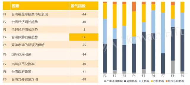 在文章一開始曾提到,酒店行業十分敏感,較容易受到大環境影響,而且影響因素錯綜複雜,因此在問卷調查中我們盡可能地列舉出關聯性較強的影響因素,以對比各個因素的影響力。