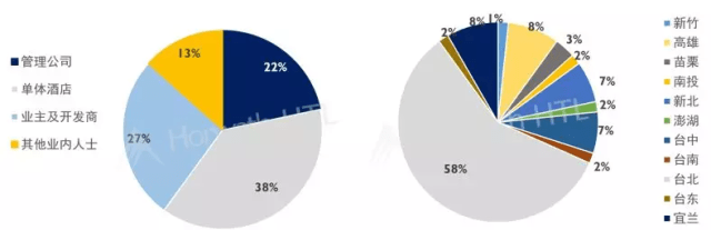 本次調查包含了台灣11個不同的城市和地區(縣市),收集了來自於開發商、酒店管理公司、單體酒店等其他業內人士共計60份有效問卷。問卷內容主要涵蓋市場對於住宿率、平均房價和總收入水平在未來一年發展的預期。