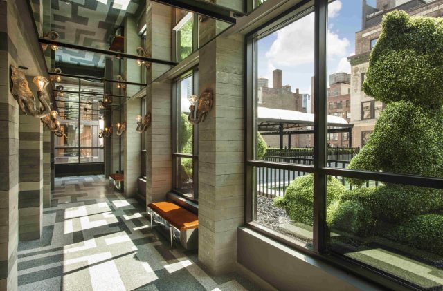 | Moxy NYC Time Square 通往頂樓酒吧的走廊設計 |