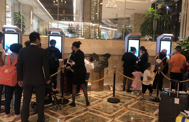 抱著好奇的心態,我向工作人員探究了他們對於自助入住機的看法。工作人員表示自助機的引進給他們的工作帶來了很多便利,由於酒店量體很大,擁有990間豪華客房及套房,在過去的入住和退房高峰期,客人一般都要花很長時間排隊,很多客人是全家來這裡度假的,而要讓小朋友不打不鬧地排隊是很難的,這個時候客人一般都會比較煩躁。