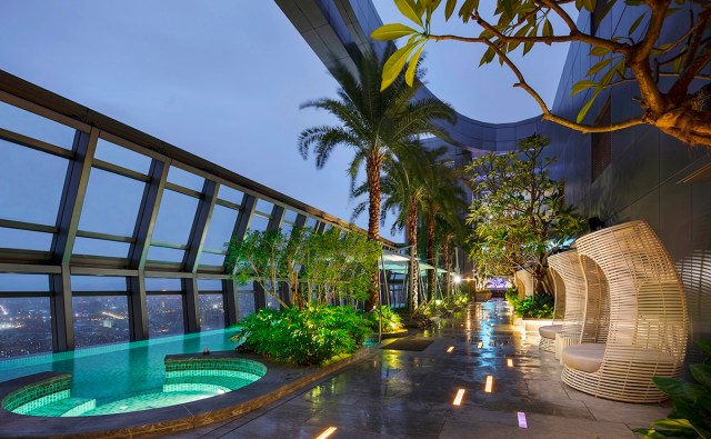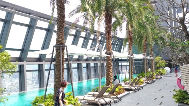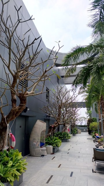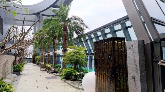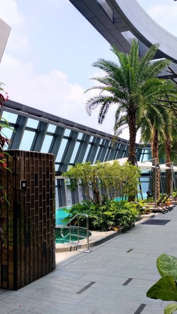 | 同棟二間酒店均標榜無邊際泳池,實際上為互通共用。泳池區設計規劃成熱帶渡假氛圍。 |