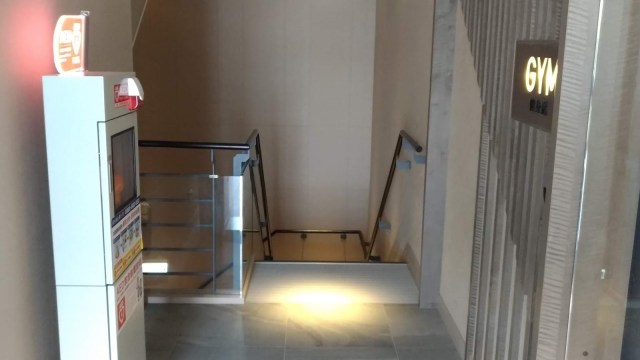 | 右為健身房(以房卡感應入內,自助式服務);左為AED設備 |