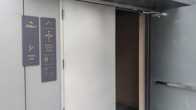 | 「希爾頓區」頂樓出入口的指示牌 |