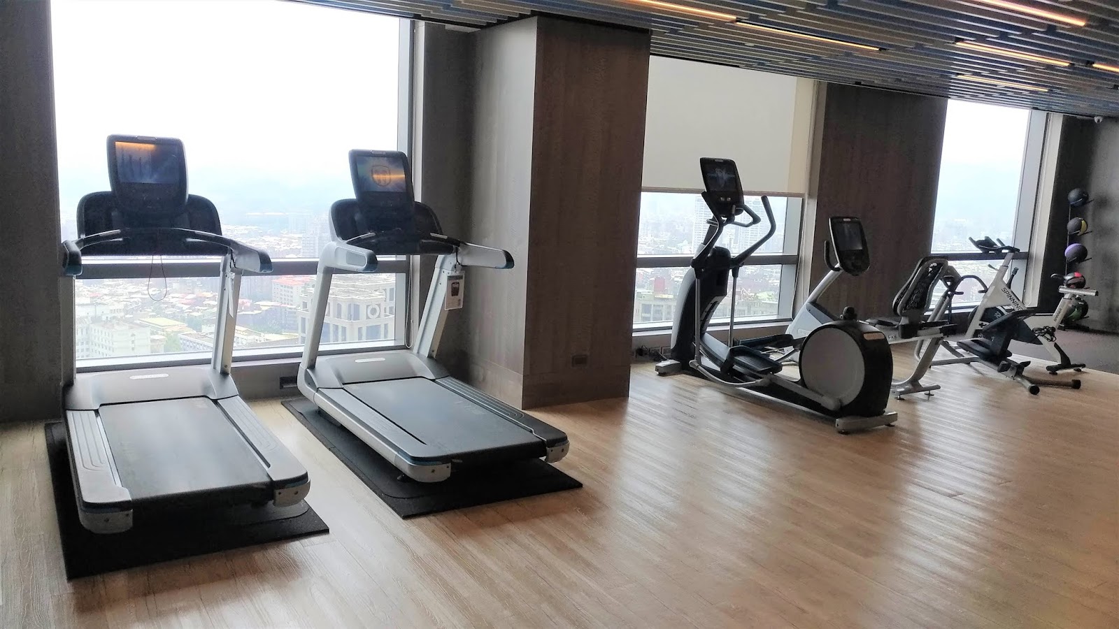 | 健身房設備一隅 02 (跑步機、滑步機、腳踏車、伸展器材、藥球) |