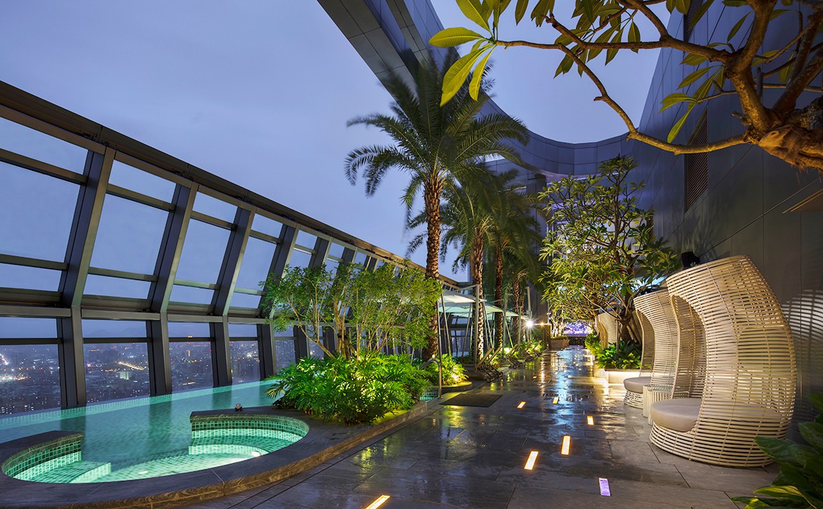 | 同棟二間酒店均標榜無邊際泳池,實際上為互通共用。泳池區設計規劃成熱帶渡假氛圍。 |