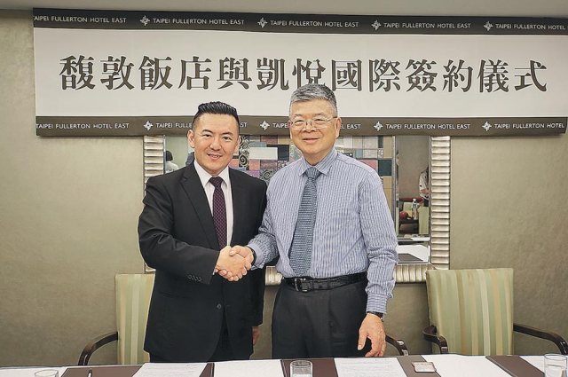 | 台北馥敦南京館獲核准通過飯店危老重建第一案後,馥敦飯店集團董事長陳文榮(右)29日與凱悅國際酒店管理公司地產及發展副總裁張知浩簽約。圖/姚舜 |
