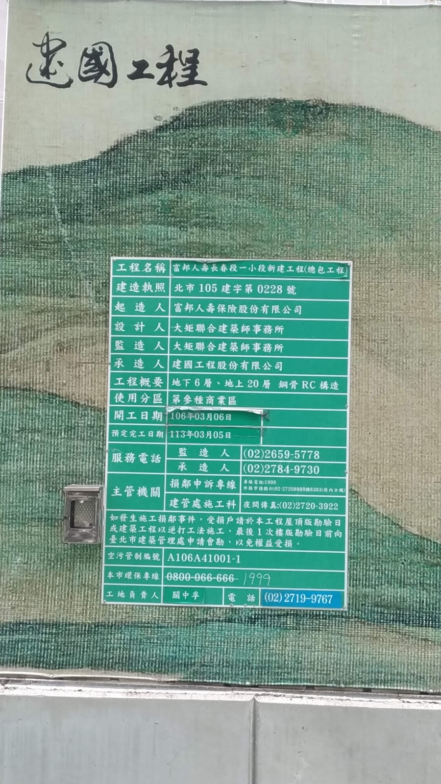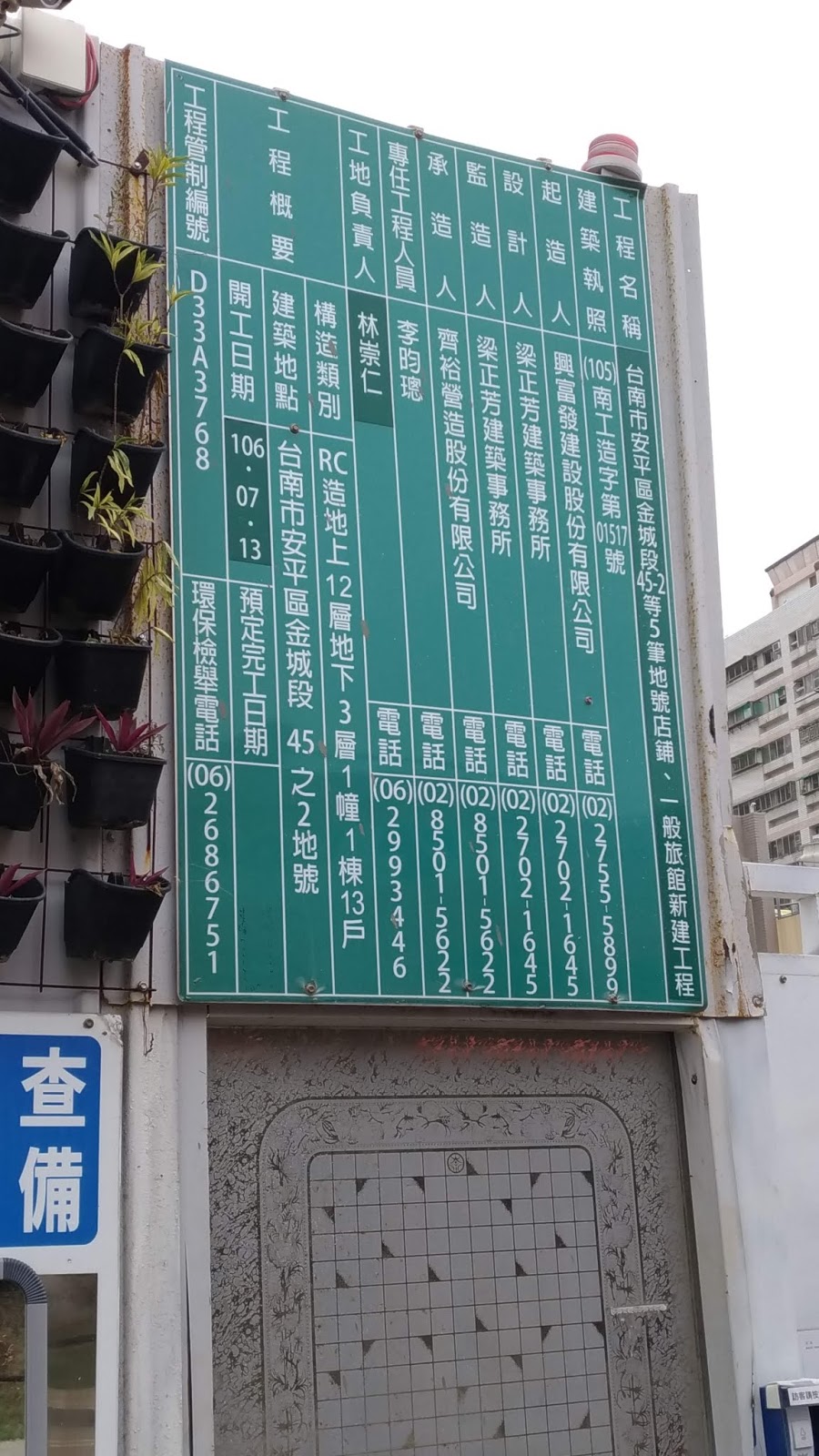 | 台南興富發雅樂軒酒店的工程告示牌,預定是樓高12層、地下3層的建物,完工日是free style (笑) |