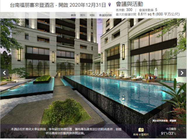 | 台南善化桂田福朋喜來登酒店早期的網頁資訊與設計構想圖 (開幕日已不正確且無法確知) (圖片來源:網路論壇 ) |