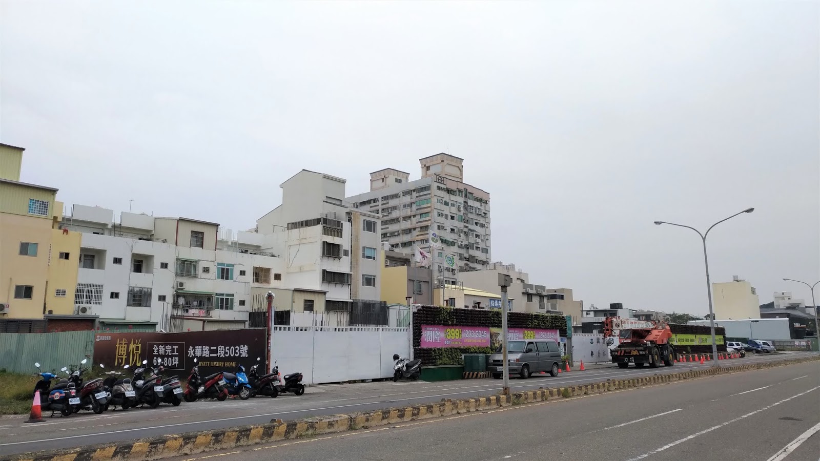 | 左為第二期的酒店預定地(現為展售中心),右為第一期住宅建案工地 |