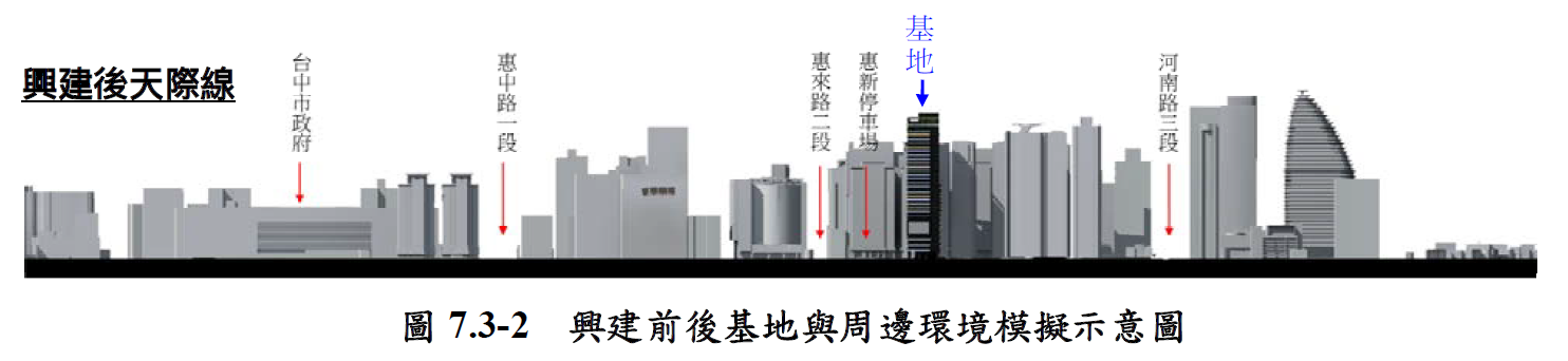 | 以台灣大道為水平軸,在酒店興建後的天際線 (圖片來源:網路論壇 ) |
