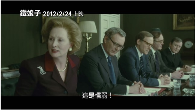 | 「這是懦弱!(This is cowardice!)」(截圖來源:電影【鐵娘子:堅固柔情】預告片) |