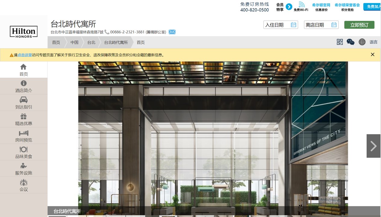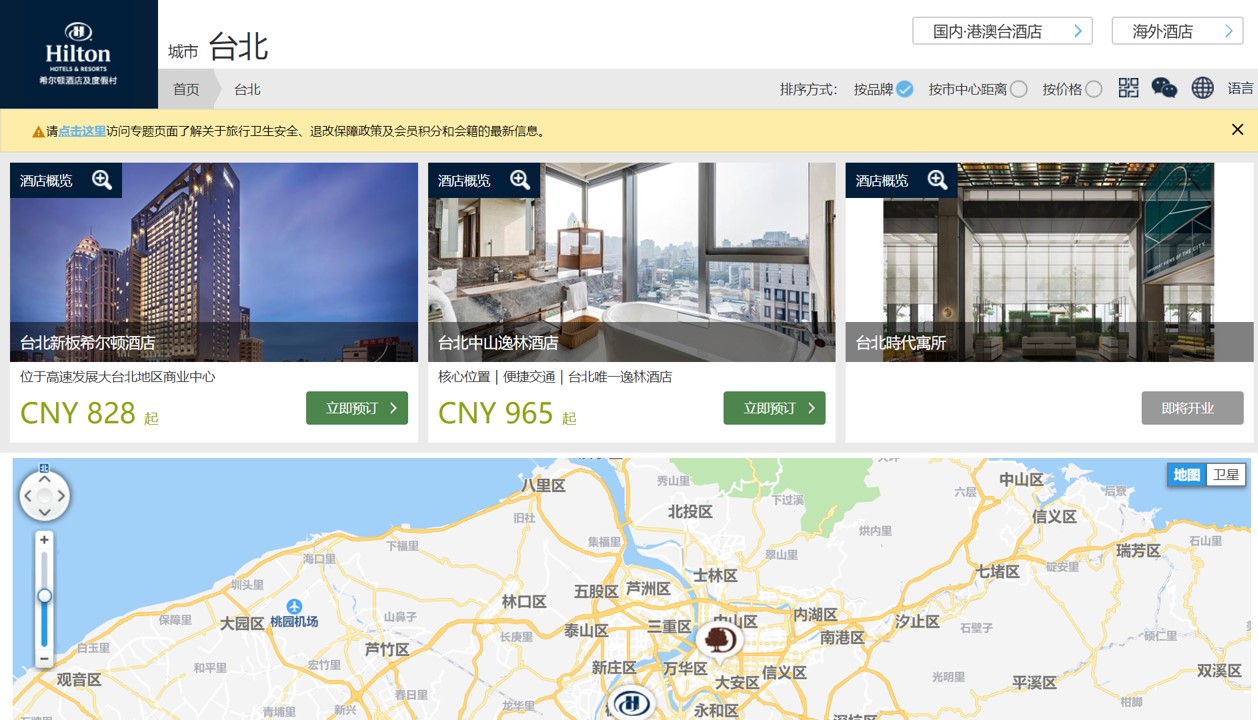 | 希爾頓集團中文網站的呈現 (圖片來源:官網截圖 ) |