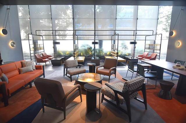 〈台北時代寓所〉大廳挑高,空間寬敞舒適,公共休憩區非常時尚摩登。(圖/姚舜) |
