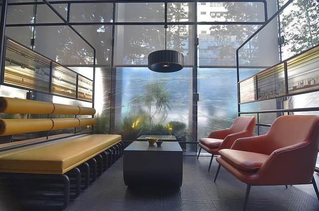 〈台北時代寓所〉大廳以大片落地玻璃將室外的景觀公園,以及室內台北旅人們溫暖的家連結,窗明几淨、光線穿透,將自然與人造的完美揉合。(圖/姚舜)* |