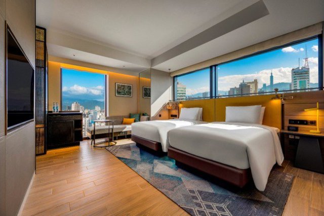 | 轉角客房有雙面窗景,可收101或新光三越美景。圖/台北時代寓所提供 |