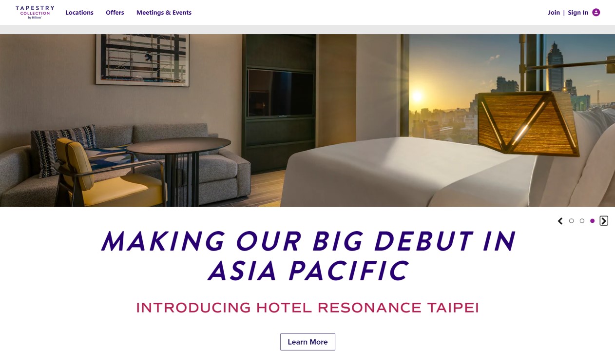 | Tapestry Collection by Hilton 品牌官網已將「台北時代寓所(Hotel Resonance Taipei)」定義為「進軍亞太市場的重要一步」(截圖來源:集團官網 ) |