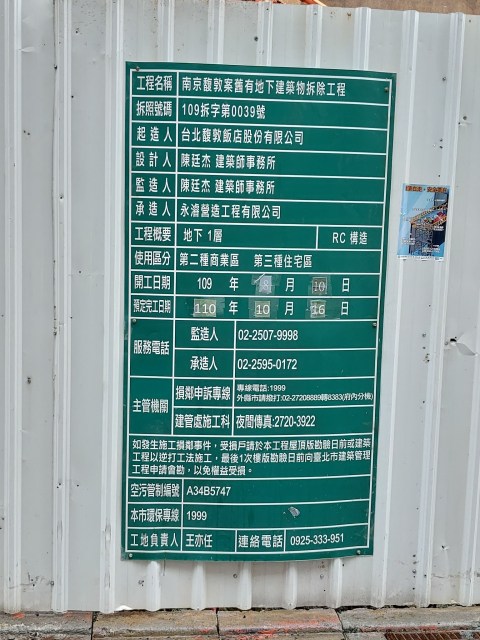 關於2019年10月所提及的台北馥敦飯店南京館的危老建築改建案,業主決定興建酒店式住宅與凱悅尚萃酒店(Hyatt Centric)共構,並與大陸建設公司合作,預計2024年完工開幕。依筆者於今年12月初所見,原建築體已鏟平,並進行地下層拆除作業,預計2021年將接續新建物興建工程, 一切看似都在業主的期程規劃中。