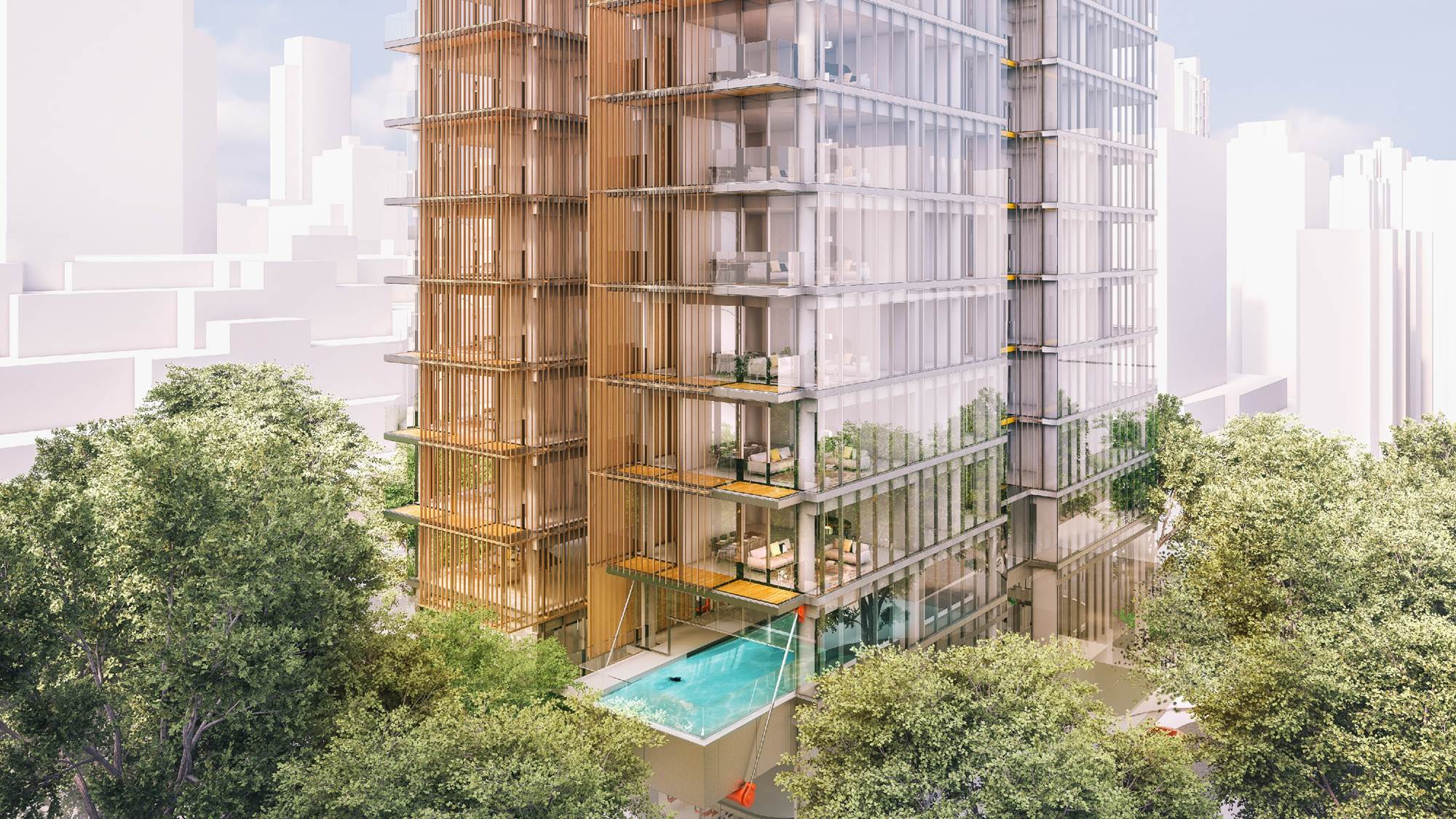 至於富邦旅館管理顧問公司的台北瑰麗酒店(Rosewood Taipei)預定地位於全台最貴籃球場,界於台北世貿中心與四四南村之間,採低樓層酒店(1~10F),高樓層為豪宅(11~37樓)的共構規劃,從去年觀察至今仍未動工(可參見下方實地照片)。不過,依近期網友分享的資訊─設計構想圖(亦參見下方),相當瘦高的外觀,似乎是要將基地與總樓地板面積發揮到極限。
