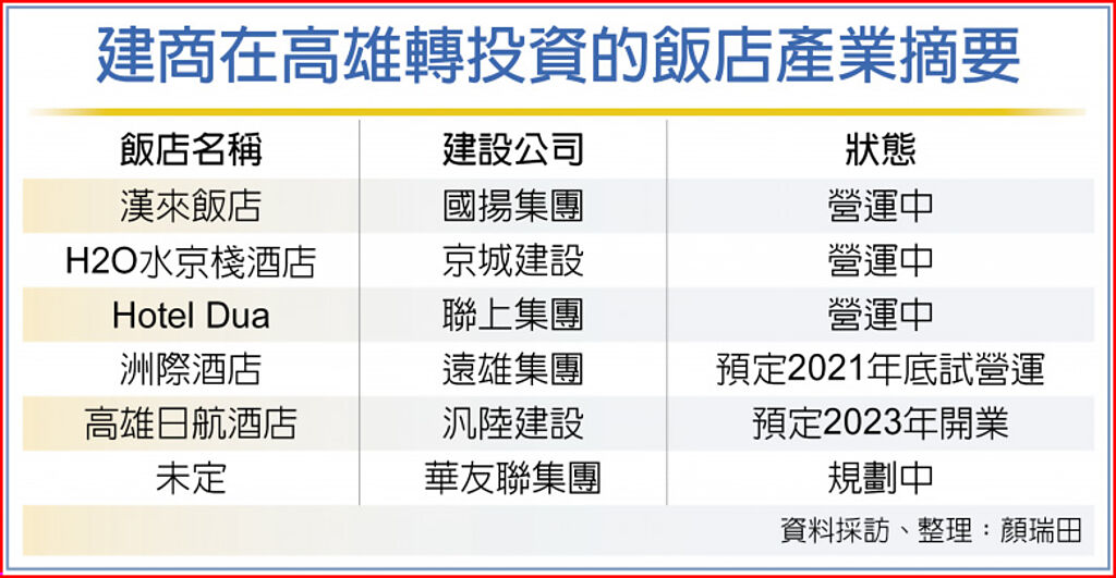 | 建商在高雄轉投資的飯店產業摘要 |