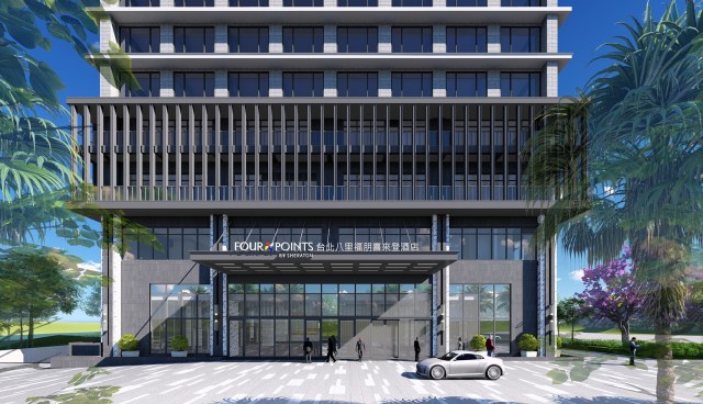 | 八里福朋喜來登酒店一樓大門的建築效果圖 (圖片來源: 酒店官方臉書) |