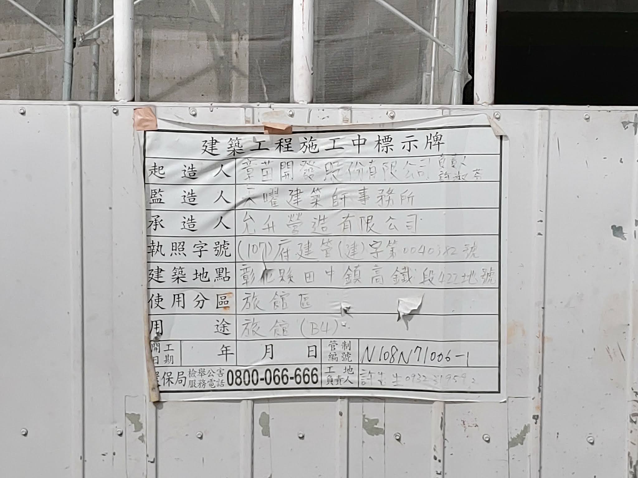 建設處指出,該區核發建造旅館僅此1件,這棟旅館目前已蓋到9樓,基地面積約770多坪,章苗開發公司申請建照為地下2層、地上10層,2019年2月21日開工,預計完工日期為2022年10月20日。