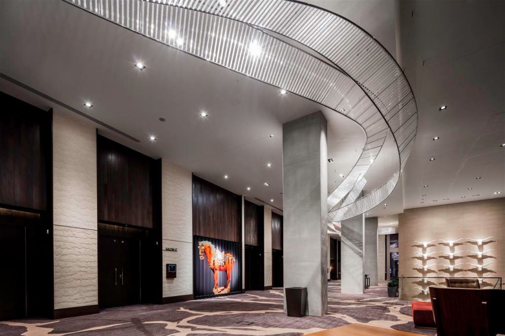 | 位於美國德州Renaissance Dallas at Plano Legacy West Hotel 的多功能會議室以唐三彩馬型陶器的創意設計(隨著人的走動方向不同,馬頭會朝左或朝右)呈現「中西文化的交會場所」之意象。很「文創」?不,那是「創意」而已。(圖片來源: 燈光設計公司 ,或參見「萬麗酒店設計風格影片」00:38~00:40的段落 ) |