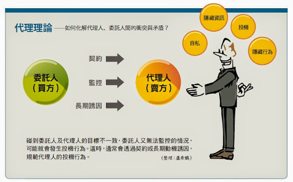 | 代理理論的圖解(圖片來源:經理人月刊 & 資管系教授 盧希鵬 ) |