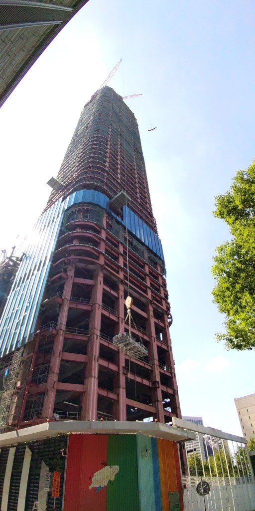 以2021年及2022年的場勘所見相比,因鋼骨搭建快速,已是高聳的大樓外觀,目測差不多將屆頂層的「竹子剖面處」(參見下方相關的設計構想圖),而就其他自媒體創作者指出,目前「竹筍處特意設計的挑高空間是未來「新舞台」再現的位置,即便「文化資產的定義及開發的附加條件」與「民間私人的商業空間整體運用」有所衝突。雖然按建築法規的計算公式,工程告示牌預計完工期是在民國121年,但以去年(2022年)所見外觀,預計建築封頂的時間大約落在去年底到今年第一季之間,再來就是各樓層的搭建等基礎的階段,而管線配置、內部裝潢又會是下一階段需「慢工細活」的部份,推測大概要等到2025年才會比較有機會進展到「最後籌備階段」。
